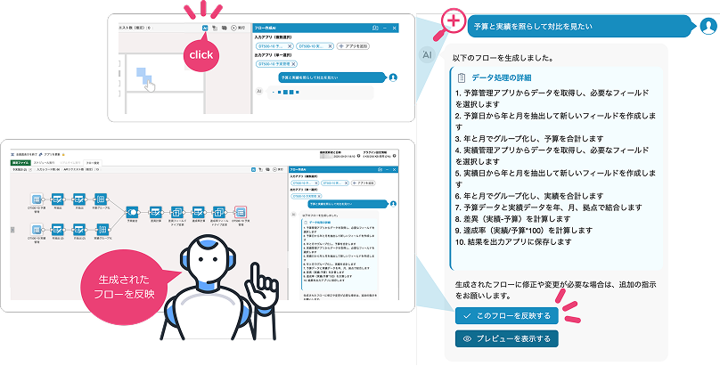 チャットでの対話を通してフローが作成できる