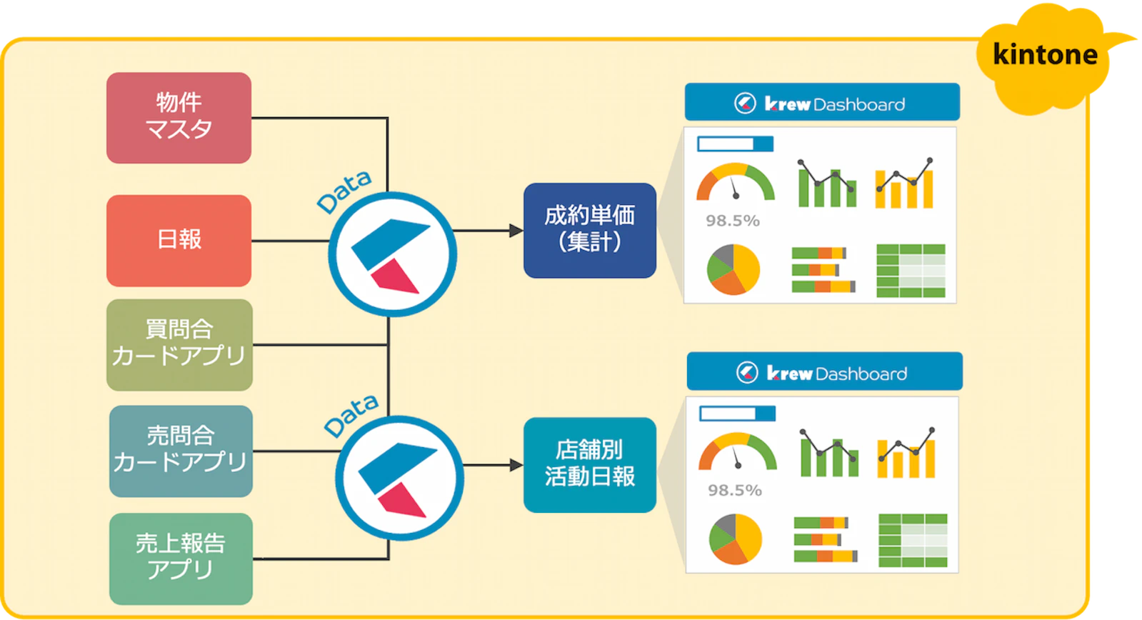 krewDashboardの活用例:kintoneに毎日蓄積されていくデータから様々な切り口の指標を可視化