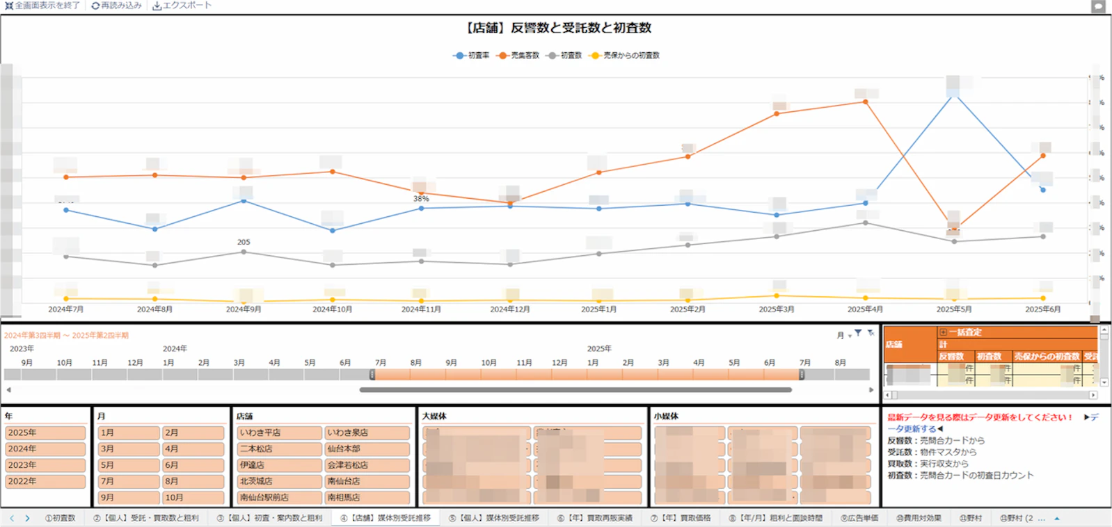 「一括査定サイトなどの媒体からの反響数や委託数、アポイント取得数などをkrewDashboardで細かく見える化しています。エリア別の振り分けも含めて可視化することで、営業戦略の立案やマーケティング施策の検討などに役立てています」と小林氏。