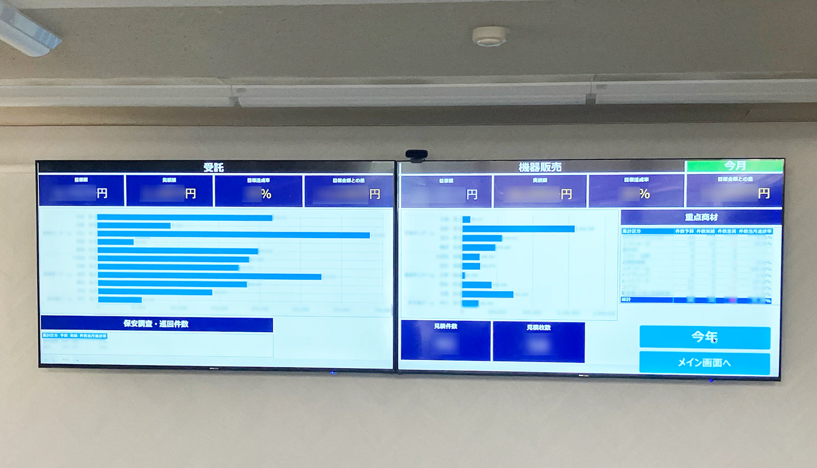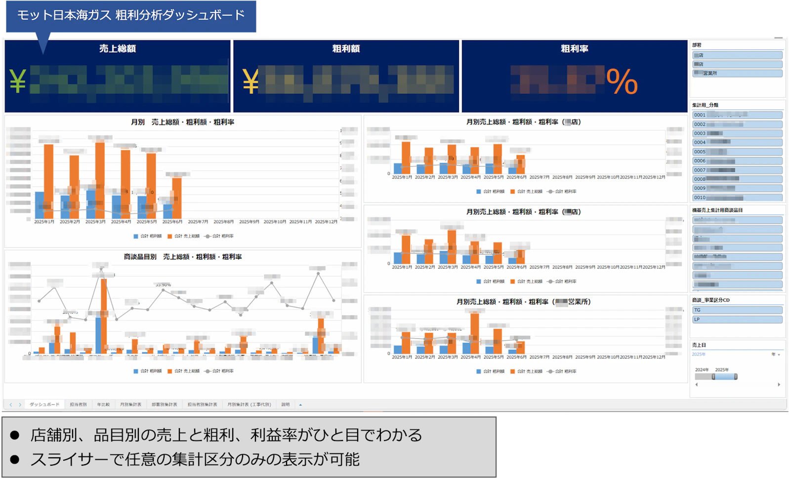 さらに現場への可視化も徹底している。「充実した機能を持つkrewDashboardのおかげで、今は予実管理も含めてダッシュボード画面で可視化し、受託と機器販売それぞれで、店舗別の予算と実績の状況を各店舗に設置した画面にデジタルサイネージを表示させています」と松井氏。管理職が詳細な情報を把握する際には、クロス集計された画面にて確認することもできるようになっている。