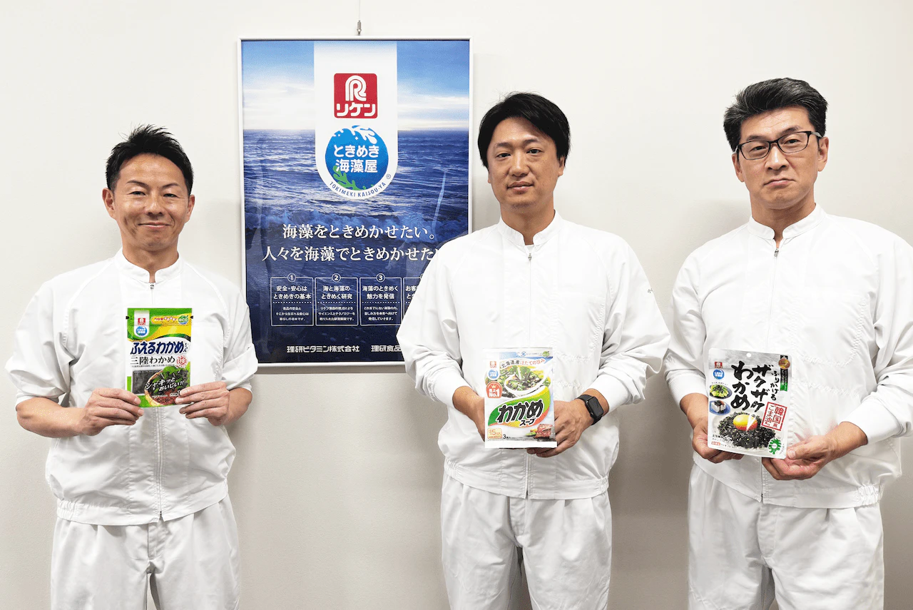 持続可能な社会をスペシャリティな製品とサービスで支え、成長する会社になることを中長期ビジョンに掲げた理研ビタミン株式会社の100%子会社として、わかめをはじめとする海藻関連製品や調味料、エキスと呼ばれる抽出物の製造など、食品事業を中心にビジネスを拡大している理研食品株式会社。1965年に塩蔵わかめの草分けとなる「わかめちゃん®」を発売以降、「ふえるわかめちゃん®」「冷凍わかめ」など海藻文化の普及に取り組んでおり、メニュー提案や商品開発を推進する「ときめき海藻屋」ブランドや国内最大規模となる海藻類の陸上養殖施設「陸前高田ベース」を設立するなど、企業活動と地球環境との調和を目指した日本の海藻文化の発展に尽力している。