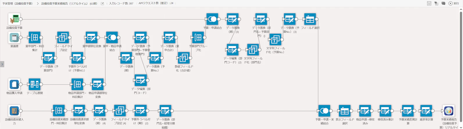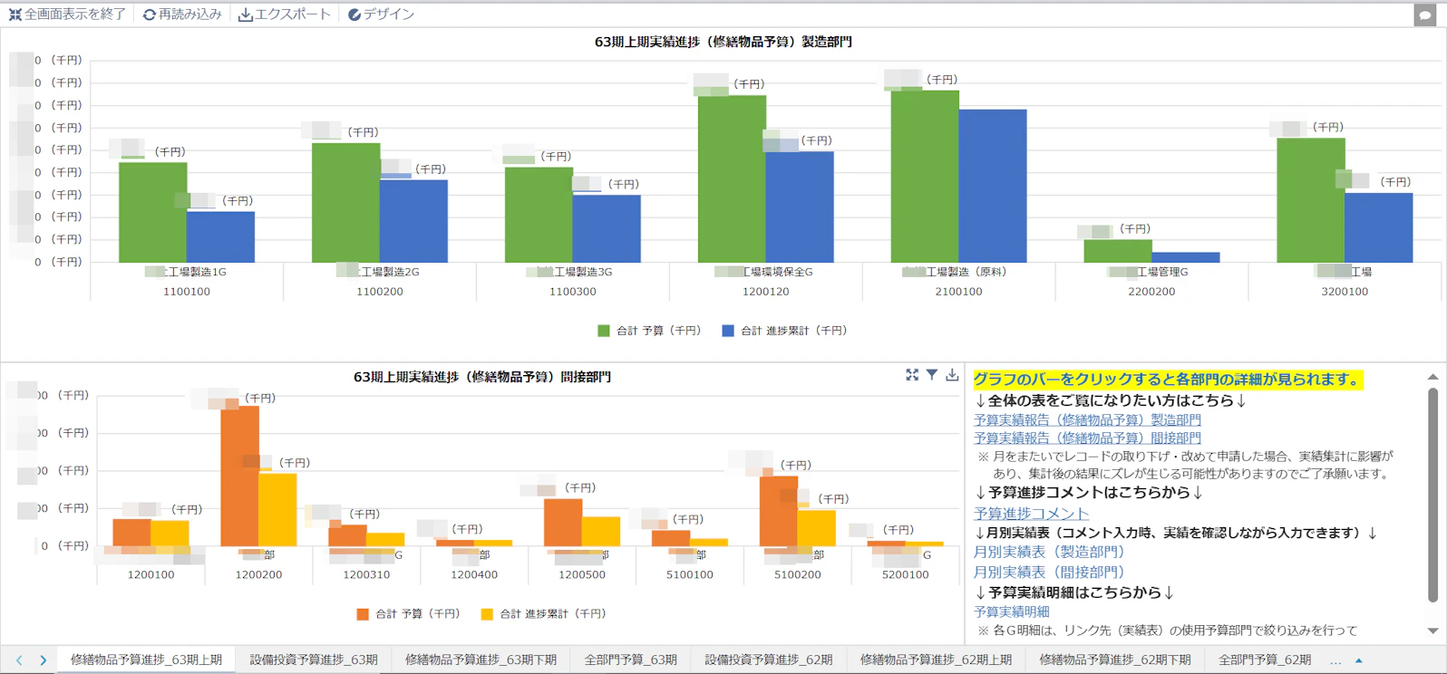 ▲部門ごとの設備投資と修繕物品を予実集計したkrewDashboardの画面