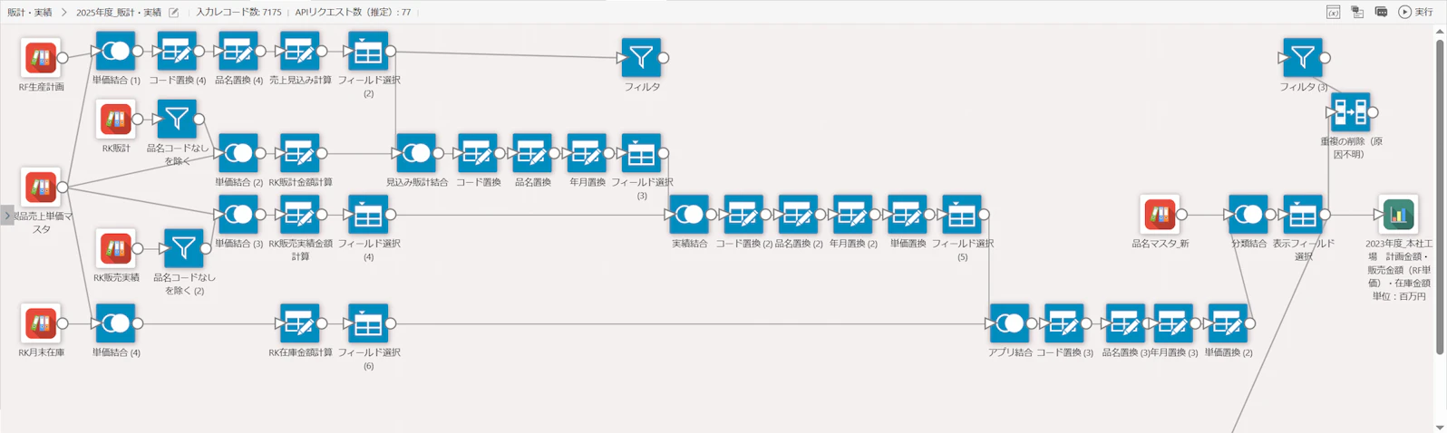 ▲計画、販売、在庫(金額ベース)の推移データのダッシュボード用のkrewDataデータ編集フロー図