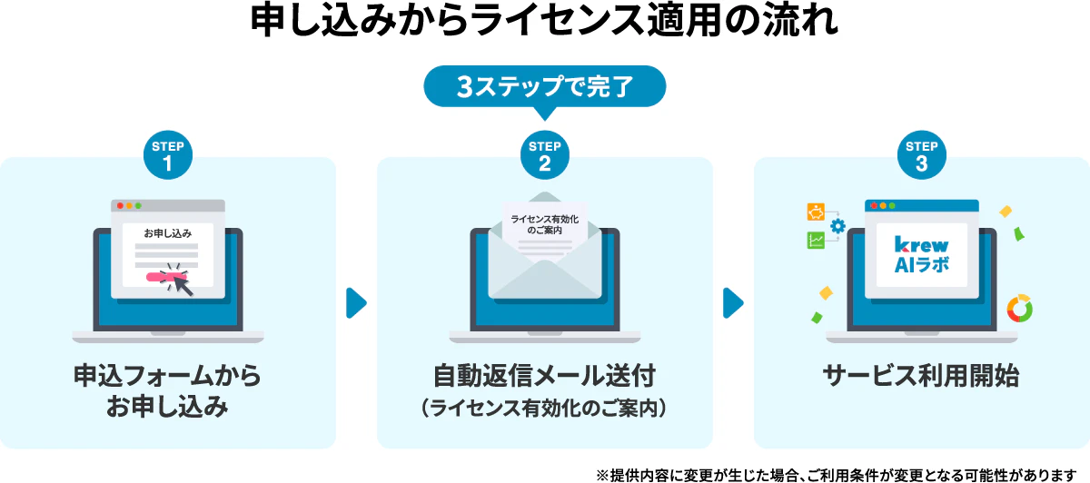 - krew AIラボで公開する各機能はトライアル中・ご契約中の方がお試しいただけます。