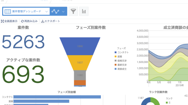 kintoneアプリのデータが更新されると、ダッシュボードも自動的に最新の情報に更新。常に正確な情報で判断できる。