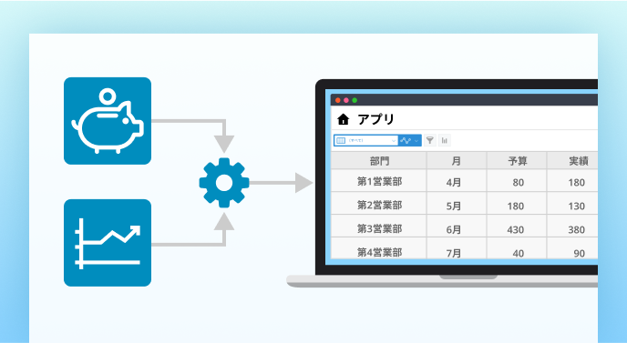 予算・実績など複数のアプリにまたがったデータを集計できる。