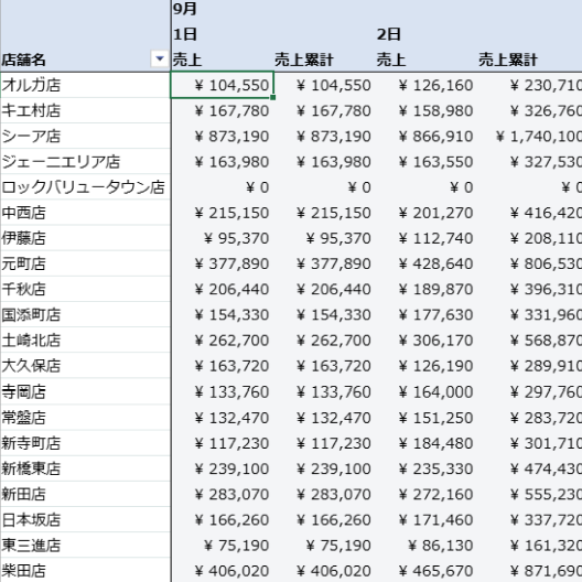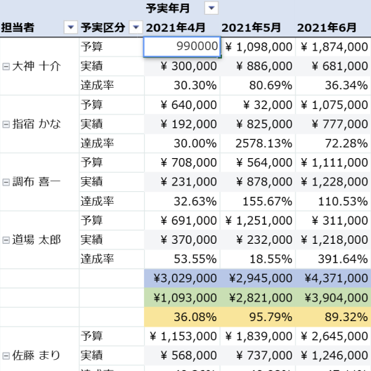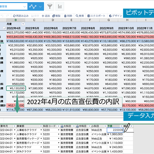 ピボットテーブル上で直接データを編集でき、データの修正や更新をスムーズに行うことができます。