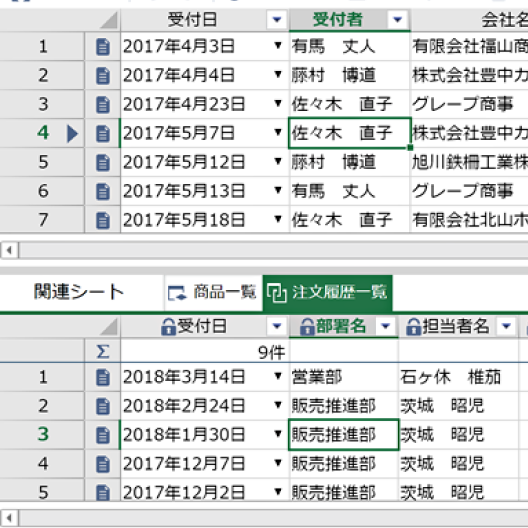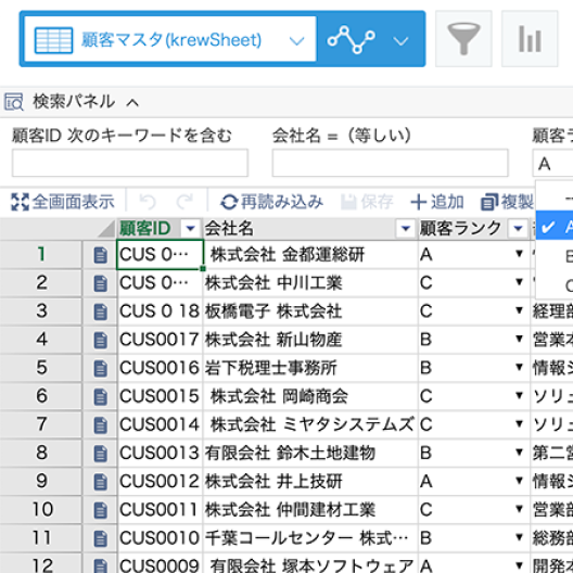 検索条件によく使用するフィールドを検索パネルに表示でき、一覧のレコードをスムーズに検索できます。