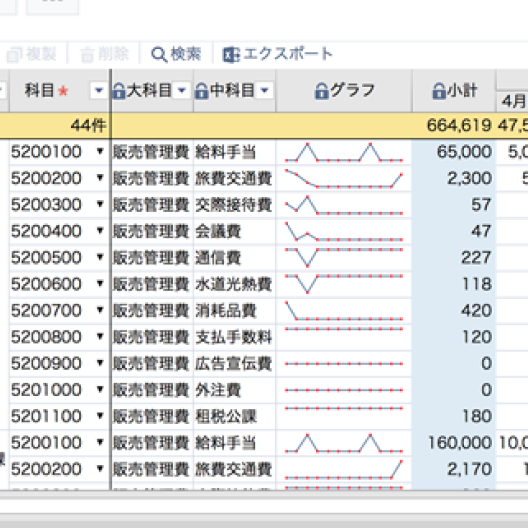 一覧上で各列の合計(累計・小計・総計))/平均/最大・最小値を計算する集計行を表示します。