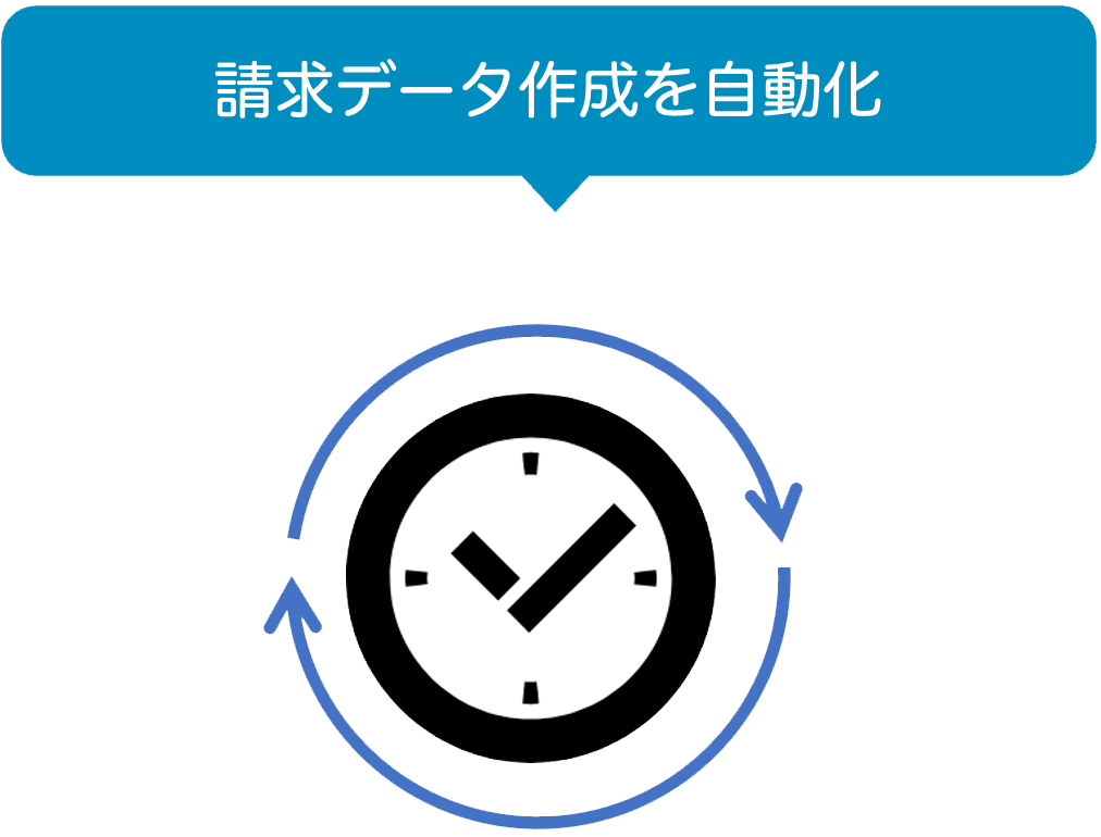 スケジュール機能で任意の時間を設定しておけば月末や締め日のタイミングで請求データを自動作成できます。毎月多くの時間を要していた工数を削減します。