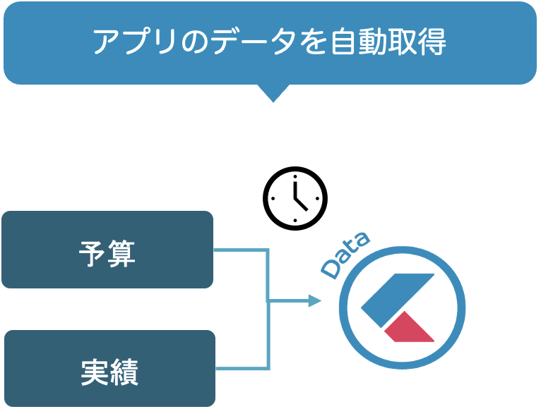 各担当者から数字を集めることに時間をかけずに、アプリに入力されたデータを設定したタイミングで自動で集計します。