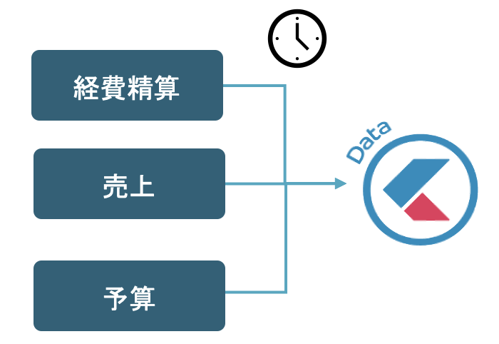 予算や売上情報、経費など複数のアプリで管理している各数字を元に損益計算書に必要なデータを作成します。