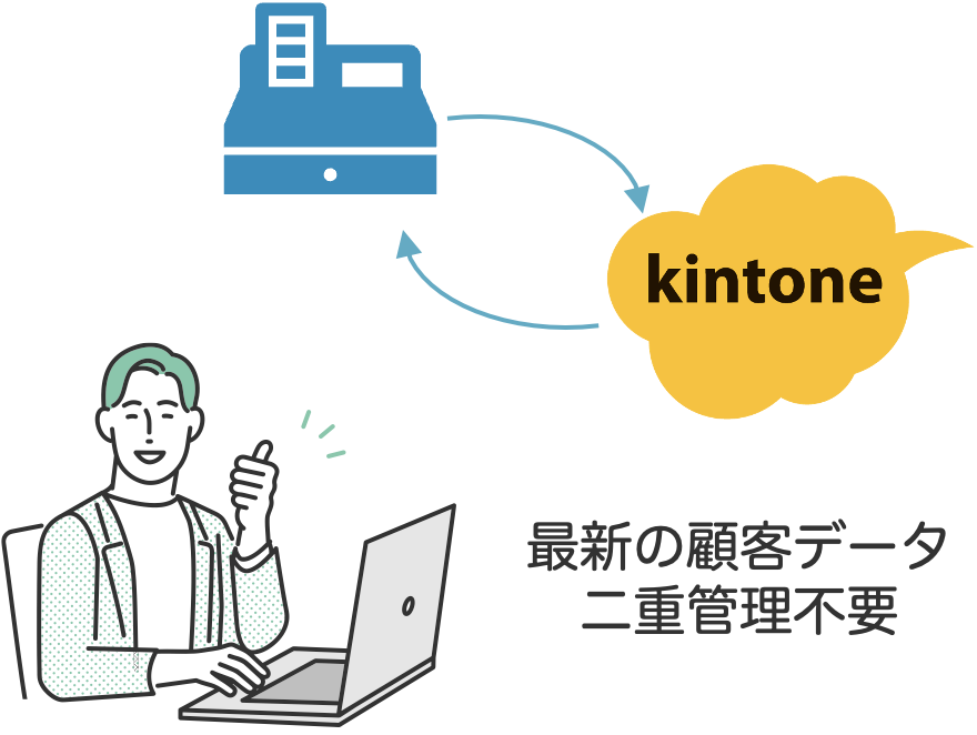 販売管理システムで管理している顧客や商品などのマスタデータをkintoneに自動で同期でき二重管理は不要です。また、必要ならば同期時にデータ補正して登録できます。